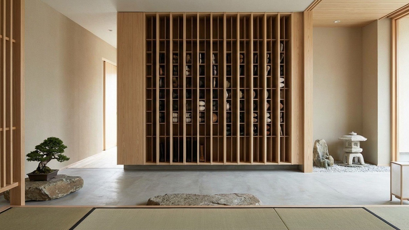 Comme beaucoup d’entre nous, je vivais cette frustration quotidienne : cette désagréable impression, en rentrant chez soi après une longue journée d’hiver, que les murs de l’entrée s’étaient rapprochés. Entre les bottines fourrées, les baskets du quotidien et les chaussures de sport qui traînent, le sol de nos entrées disparaît littéralement. Cette réalité nous pousse souvent vers des solutions occidentales classiques : meubles bas encombrants, accumulation horizontale, pollution visuelle constante.