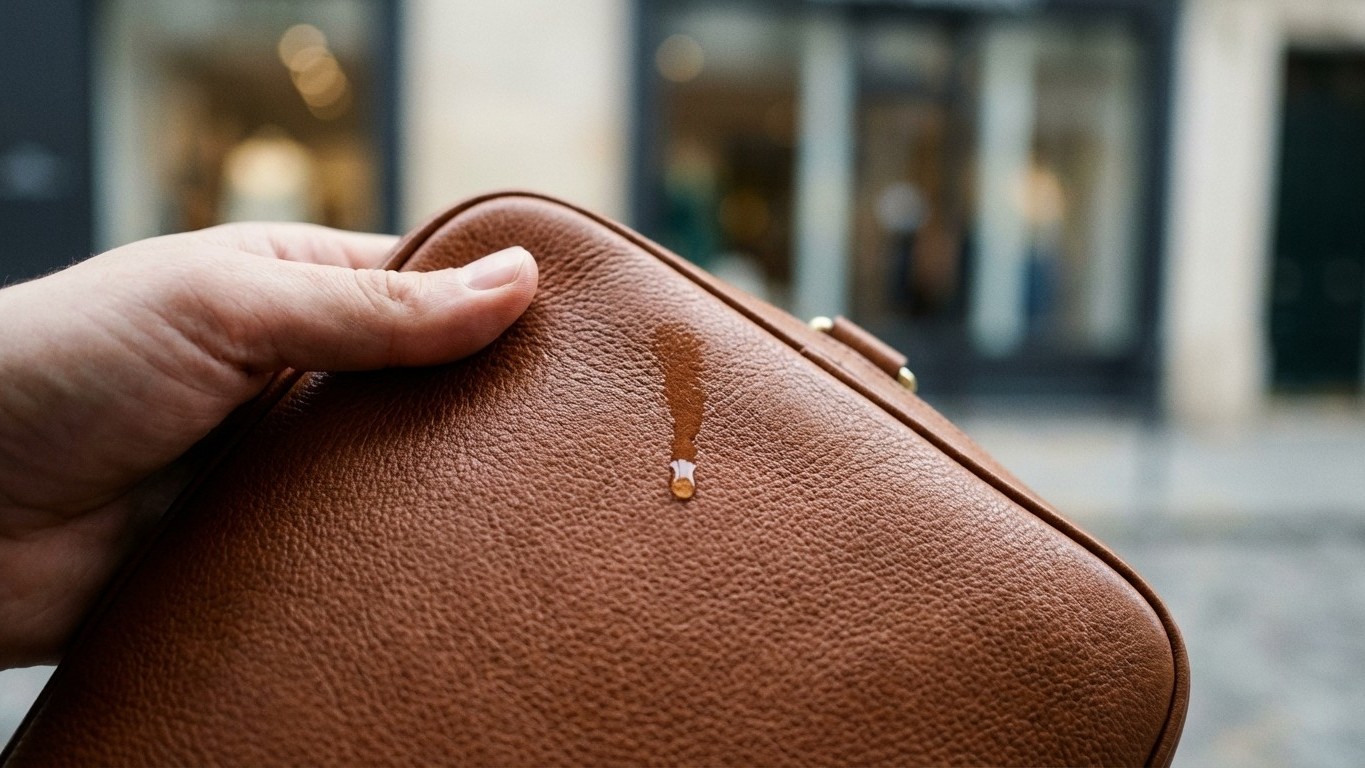 Le principe est d’une simplicité enfantine : déposez une minuscule goutte d’eau sur une zone discrète du sac, de préférence à pourquoi-ca-change-tout »>l’intérieur ou sous un rabat. Si la matière est du véritable cuir, elle va absorber l’eau progressivement, en quelques minutes. Le cuir étant une matière naturelle et poreuse, il « boit » littéralement l’humidité. À l’inverse, sur du simili-cuir ou du cuir reconstitué, la goutte va perler et glisser, refusant de pénétrer dans cette surface synthétique imperméable.