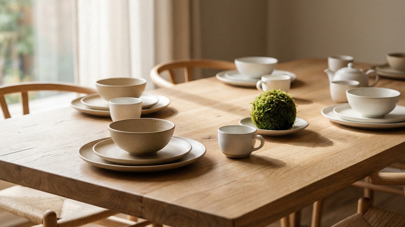 Cette nouvelle esthétique privilégie d’autres éléments décoratifs : la beauté naturelle de la vaisselle artisanale, l’éclat discret de couverts bien choisis, la présence apaisante de quelques branches dans un vase en céramique. Les espaces sont clairs et minimalistes, favorisant une atmosphère sereine et méditative. Chaque élément a sa place et une raison d’être.